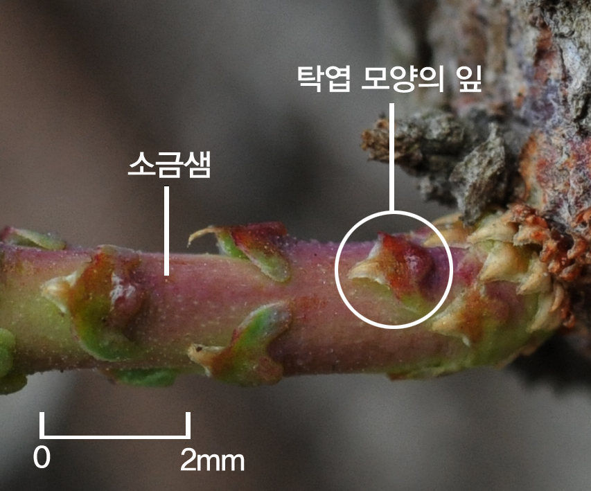 T. ramosissima의 잎과 소금샘의 모양