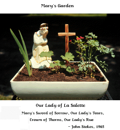 우리가 슬픔과 고통 속에서 위로를 얻기 위해 마리아께 의지하는 것 외에도, “그리스도의 고난에 부족한 부분을 채우는”(바오로) 우리는 마리아를 통해 그리스도께서 세상을 구원하기 위해 사용하신 고난에 동참할 수 있습니다. 이는 2001년 9월 11일 뉴욕 세계무역센터 쌍둥이 빌딩 테러 공격으로 사랑하는 사람들을 잃은 이들을 위한 마리아 정원 기도회에서 버몬트주 노스 베닝턴에 있는 성 요한 세례자 교회의 로버트 바파 신부가 전한 권고입니다(웹사이트 채팅 섹션 참조).